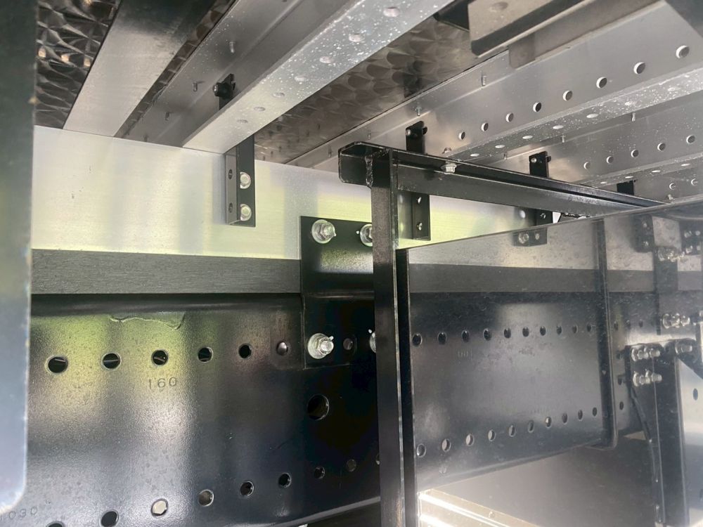 ボディはトランテックス製で、内寸L=9.62m W=2.40m H=2.41mで積載13,100kgです。