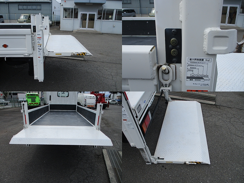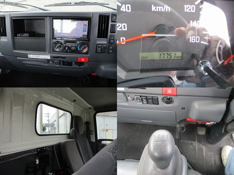 新明和製(RE06-1134)垂直ゲート*ラジコン付き*・左右電動格納ミラー 走行17,751km・ETC・ドラレコ・ナビ/テレビ/ラジオ一体・床前側450mm 張替え跡有り。 右煽り内側薄板捲れ有り。