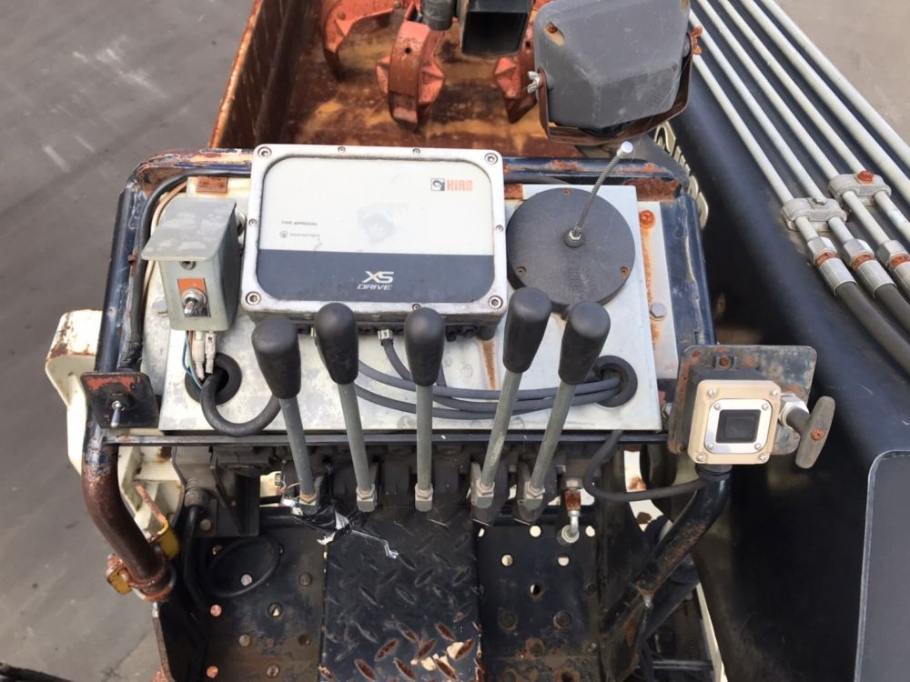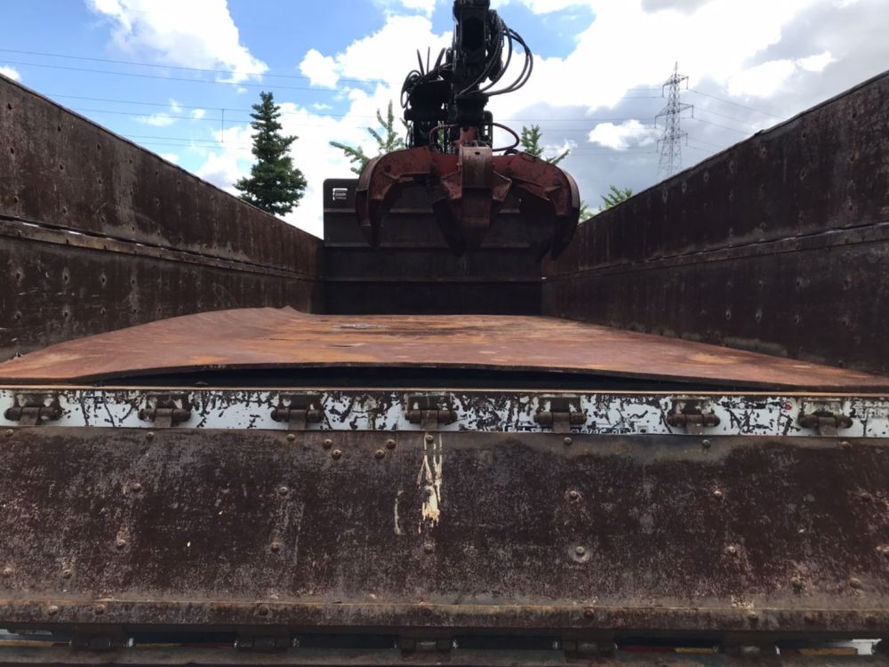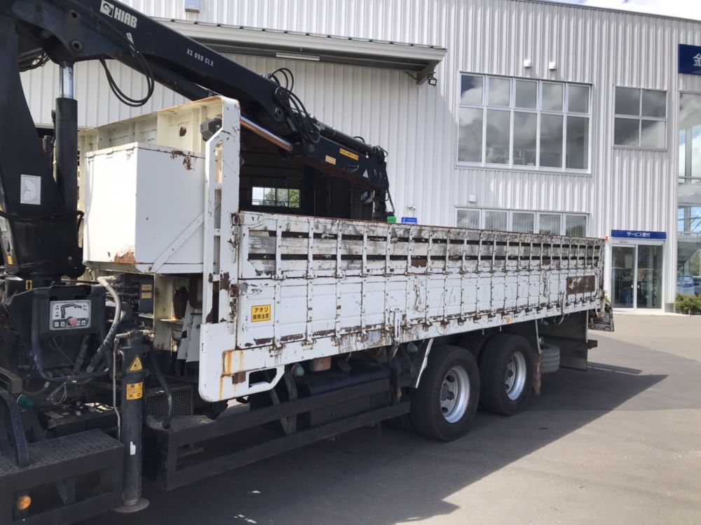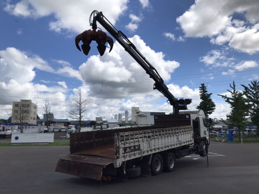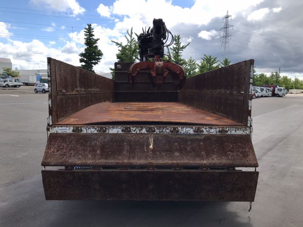 ヒアブ付クレーン(ヒアブ 0990NS-2)3段 鉄製3方開2段式アオリ セイコーラック2対 6本爪グラップル ローテーター付き トップシート付 床鉄板
