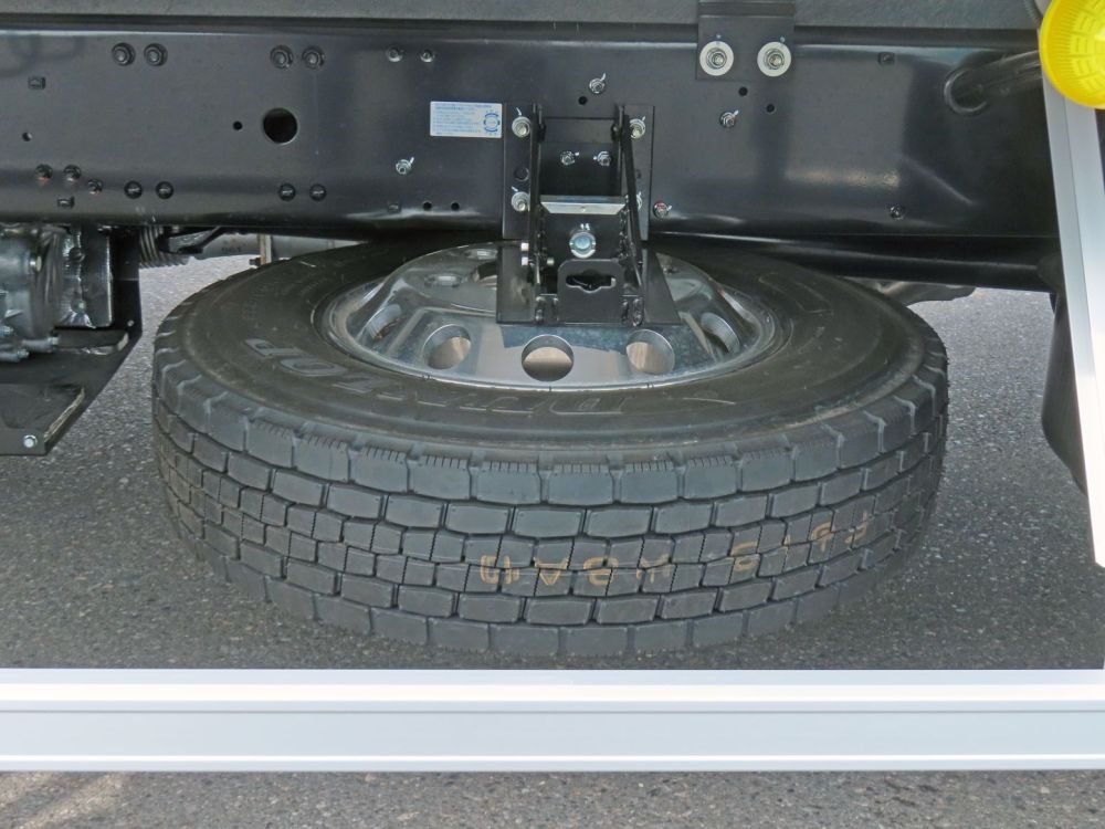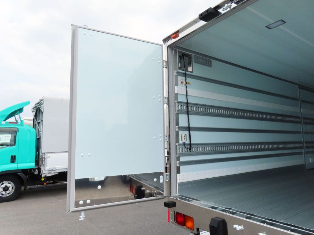 荷台内寸は(L=6.28m、W=2.26m、H=2.10m、門高=2.06m)で積載量は2,400㎏とれており、片開き式のサイドドアがついております。