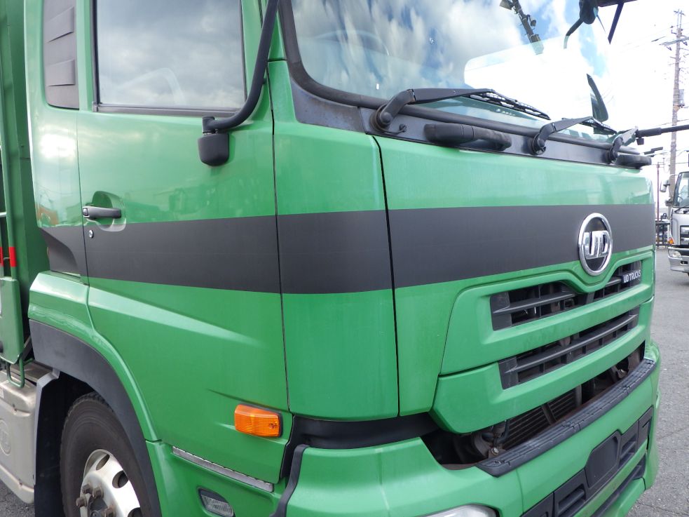 UD・大型・3軸1デフ・リーフサス・エスコット2ペダル・380PSのアルミブロック平ボディーです!