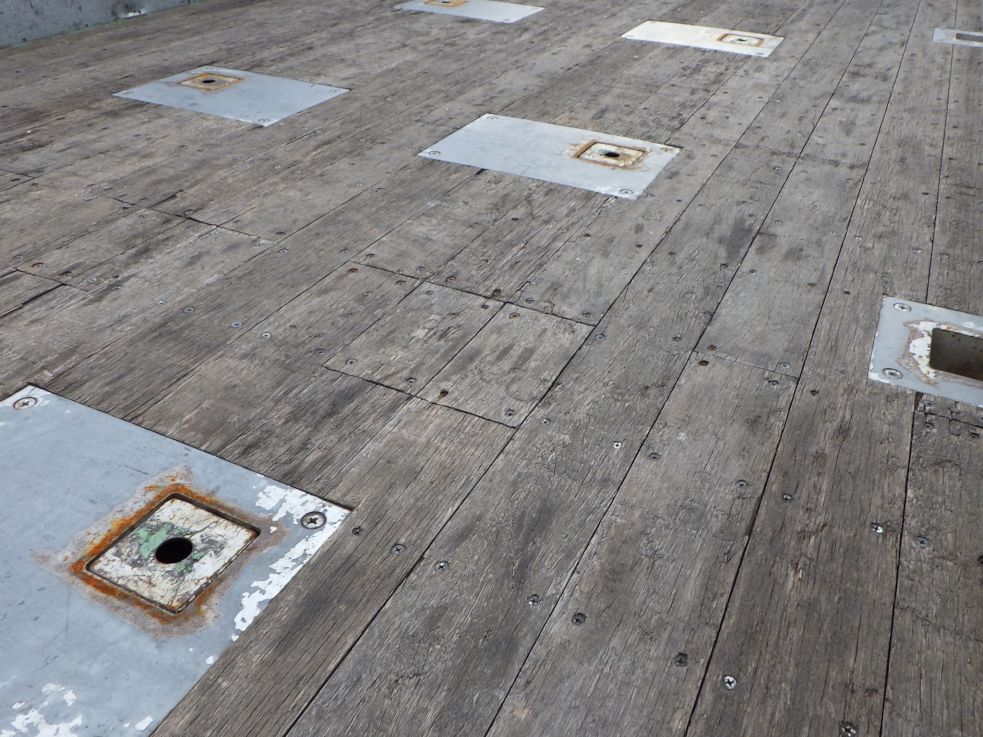 アルミブロック5方開、床は板張り、スタンション穴11対あります。