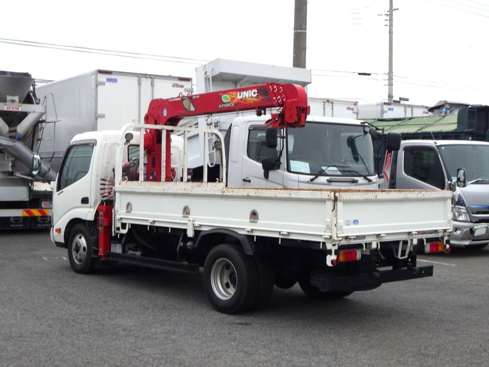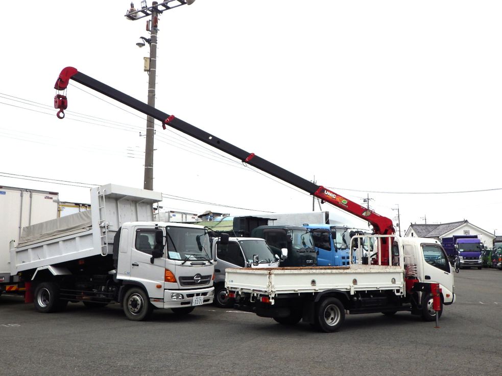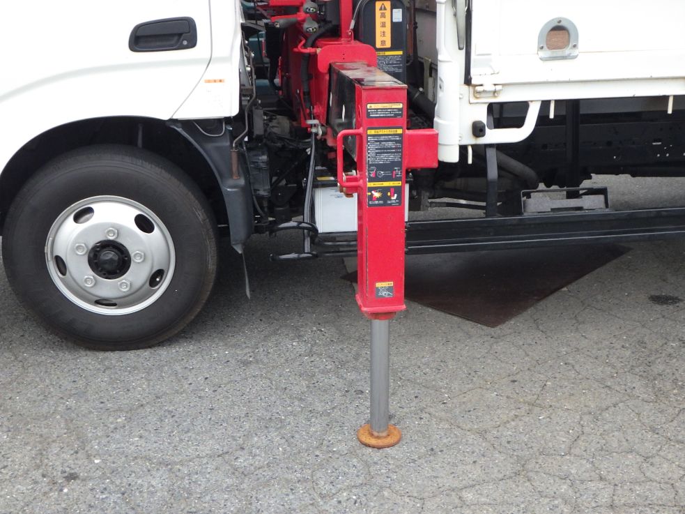 日野・小型・標準ロング・136PS・MT5速のクレーン付き平ボディーです。