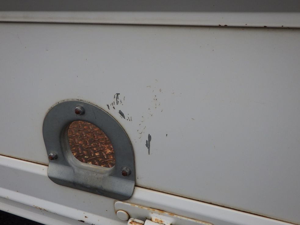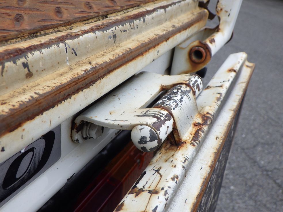 前立てと床、アオリ枠上部は鉄板縞板張りです。