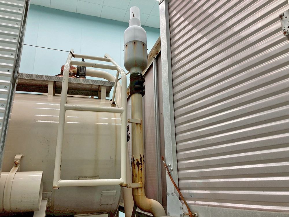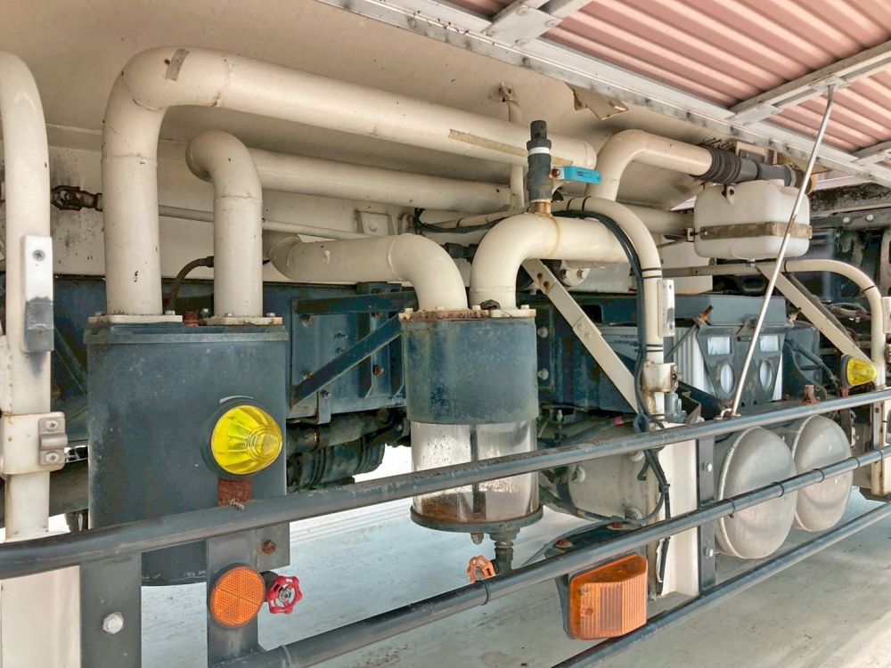 上物はモリタエコノス製、タンク・配管は鉄製、容積は10,000Lの積載物は糞尿の仕様です。