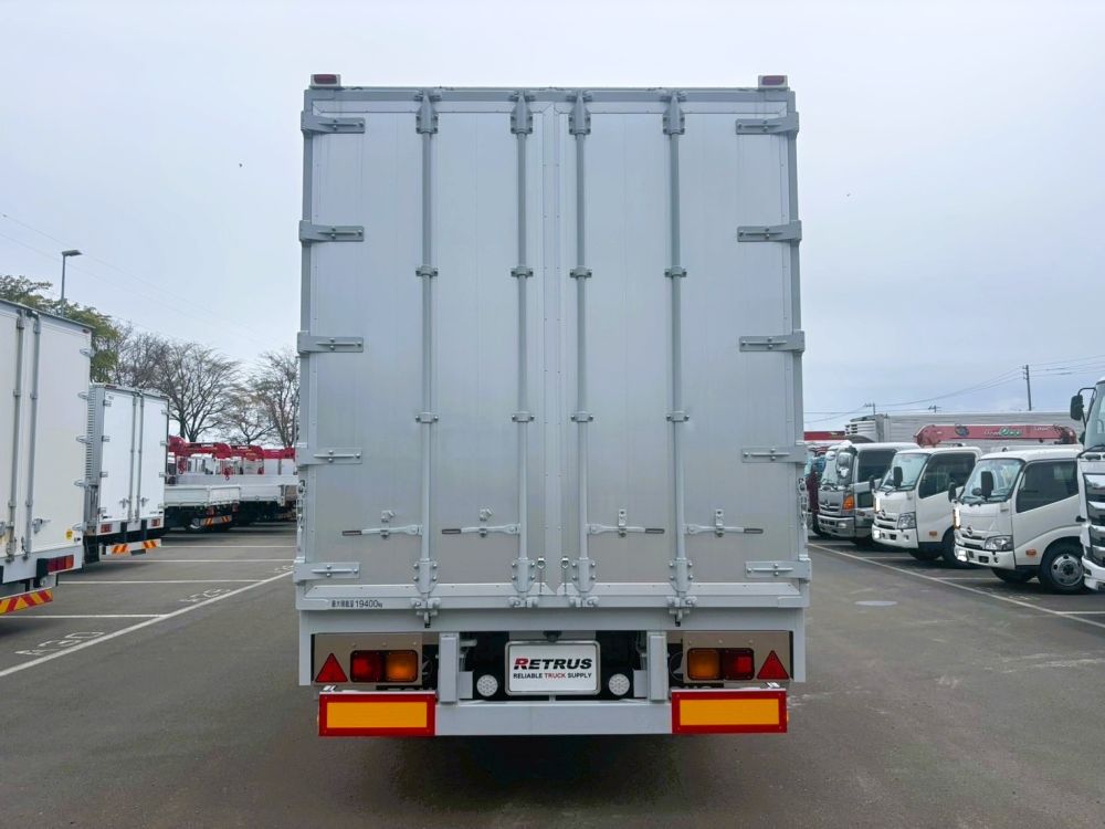 ボディ内寸はL=12.82m W=2.33m H=2.56mの約76.4立米の積載量は19,400kgといった仕様になります。