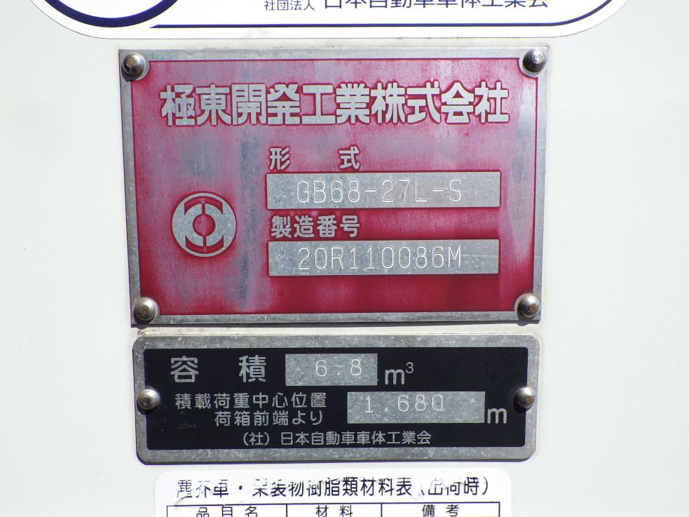 6.8立米と容量大きい車輛です。一度の運転で、多くのゴミを積むことが可能です。