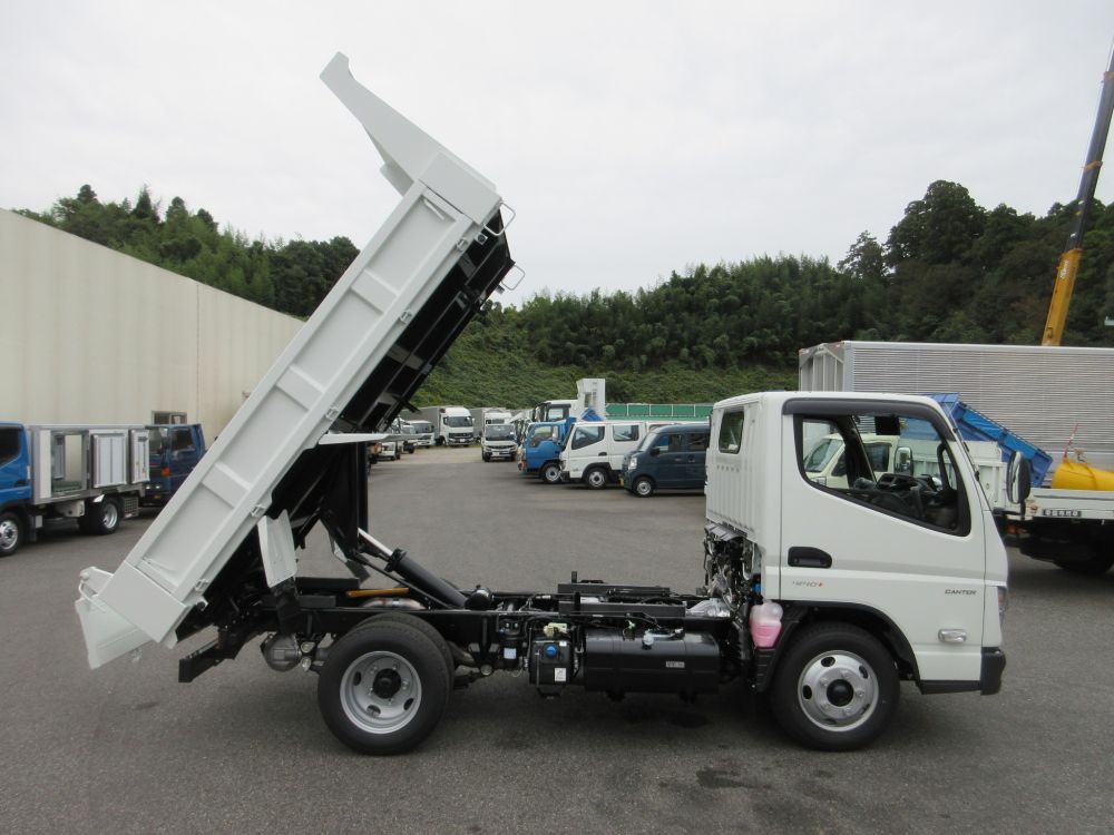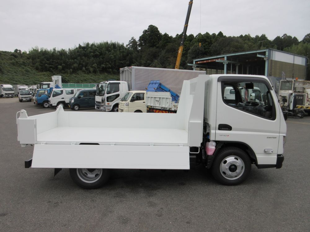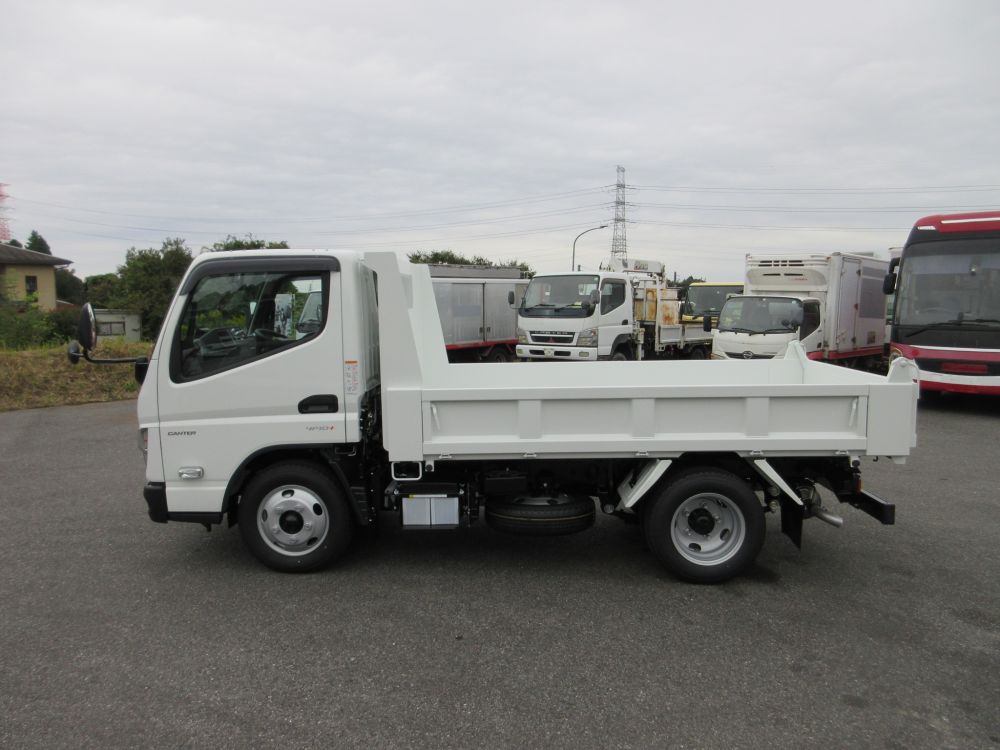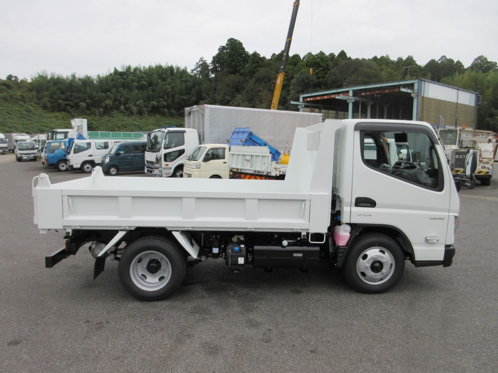 三菱 キャンター 強化3方開 全低床 土砂ダンプ エアコン パワーウインドー AM/FMラジオ 電動格納ミラー ABS エアバッグ ヒルスタート サイドガードアシスト 安全装備 カラーバックアイカメラ ドアバイザー LEDフォグランプ 燃料タンク70L タイヤサイズ205/75R16 取説・メンテナンスノート・新車保証書 リサイクル料金8830円