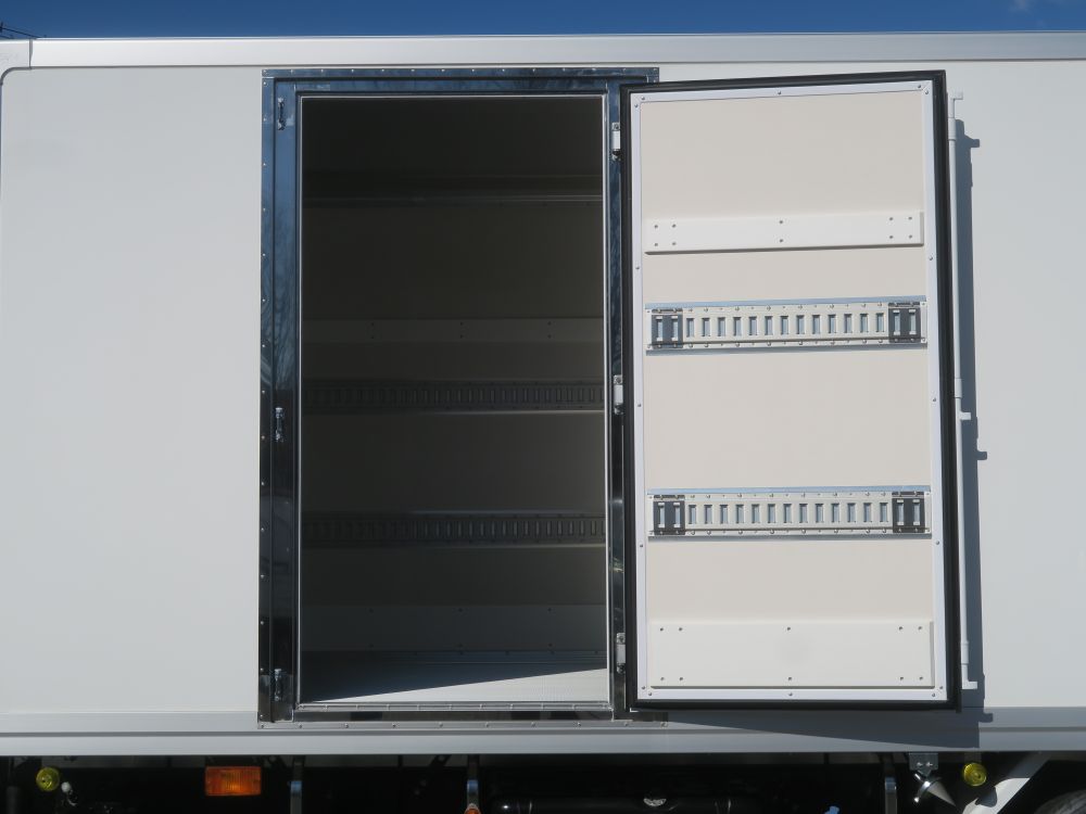 東プレ 左サイドドア片開(W1000) ラッシングレール2段 床システムフロアー 水抜前後各2ヶ所 リア観音 極東製床下格納ゲート1t