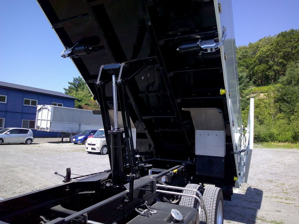 深ダンプ(新明和DR4-01S) ステンレス製 アルミアオリ2方開 セイコーラック1対 差し枠アルミアオリ付き リヤダブルゲート観音式 ダンプ式
