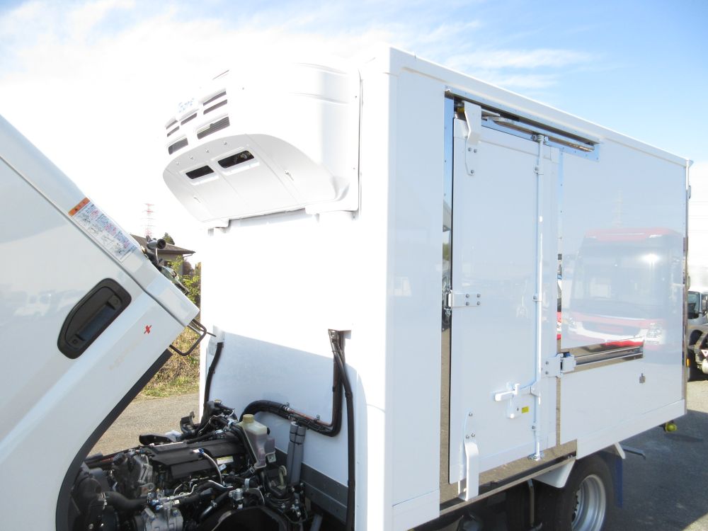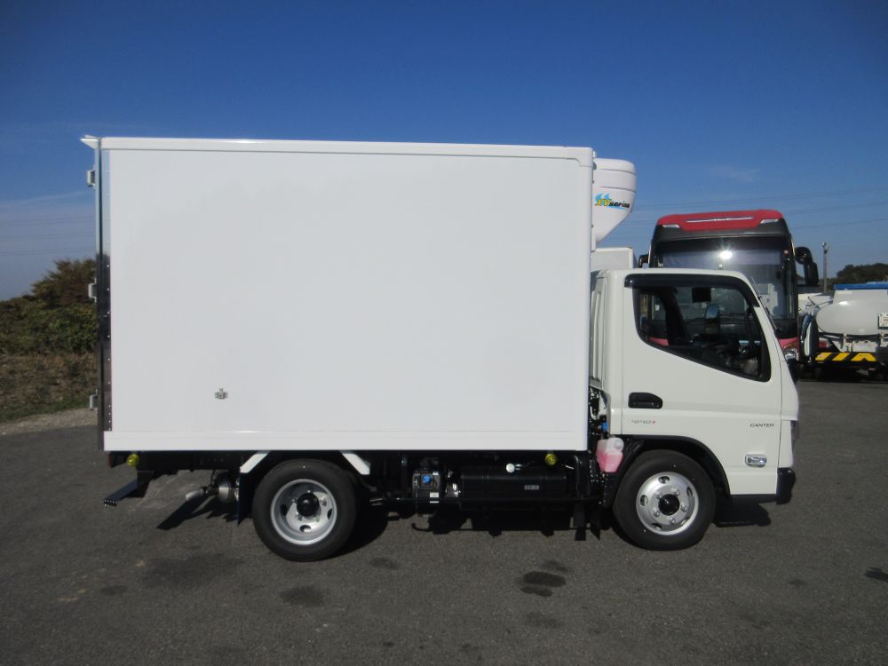 三菱 キャンター ショート 全低床 冷蔵冷凍車 低温仕様 -30度設定 エアコン パワーウインドー AM/FMラジオ ABS エアバッグ イージーゴー 安全装備 サイドガードアシスト カラーバックアイカメラ イージーアクセスキー LEDライト LEDフォグランプ ドアバイザー 燃料タンク70L タイヤサイズ205/75R16 取説・メンテナンスノート・新車保証書 リサイクル料金8830円 床ステンレス製 水抜き穴前側2箇所 ラッシング1段 90度ストッパー 庫内灯1箇所 輪止め2個 横扉スライド式 横扉口サイズ 高さ159CM 幅83CM 扉厚約75mm マーカー2対