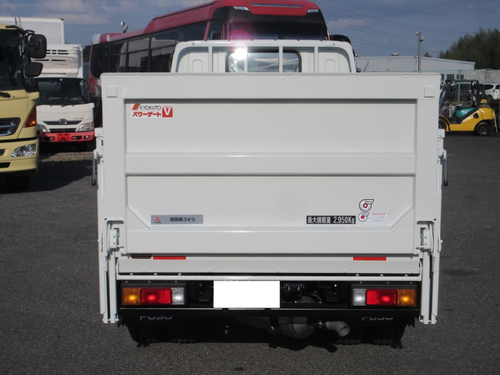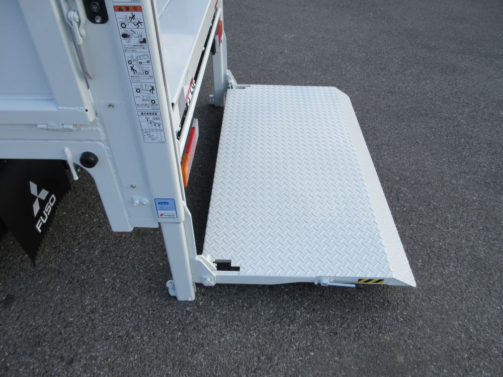 三菱 キャンター ショート 全低床 極東製 垂直ゲート 平ボデー 最大昇降荷重600Kg型 積載量2950Kg エアコン パワーウインドー AM/FMラジオ 電動格納ミラー ABS エアバッグ ヒルスタート サイドガードアシスト 安全装備 カラーバックアイカメラ ドアバイザー LEDフォグランプ 燃料タンク70L タイヤサイズ205/75R16 取説・メンテナンスノート・新車保証書 リサイクル料金8830円