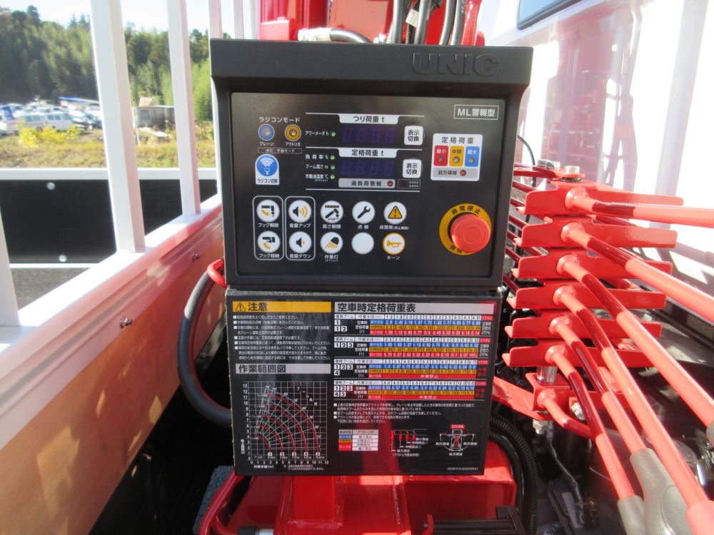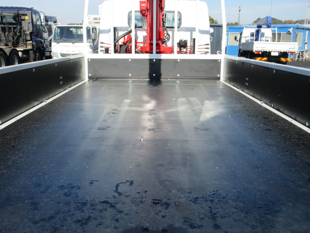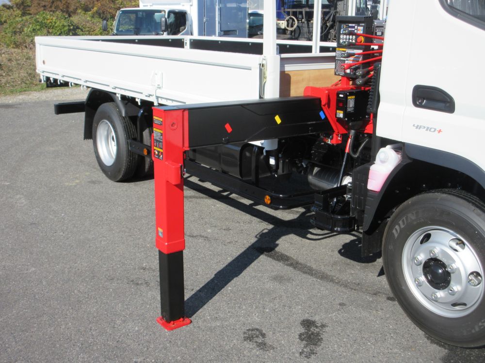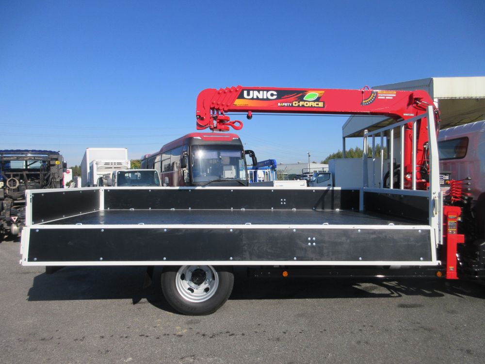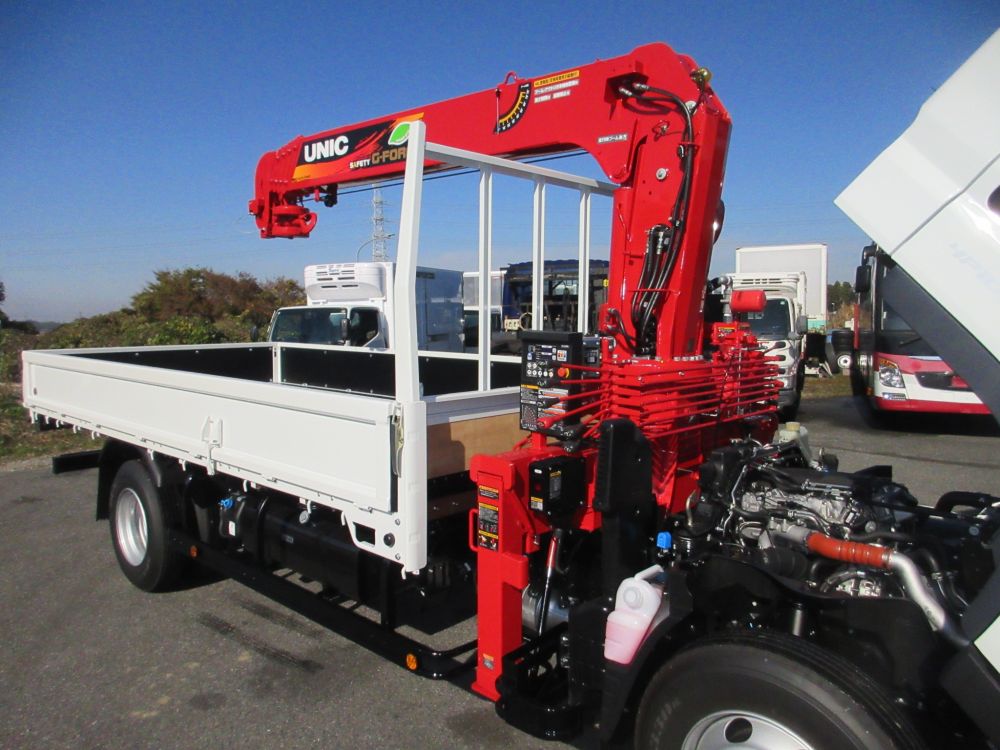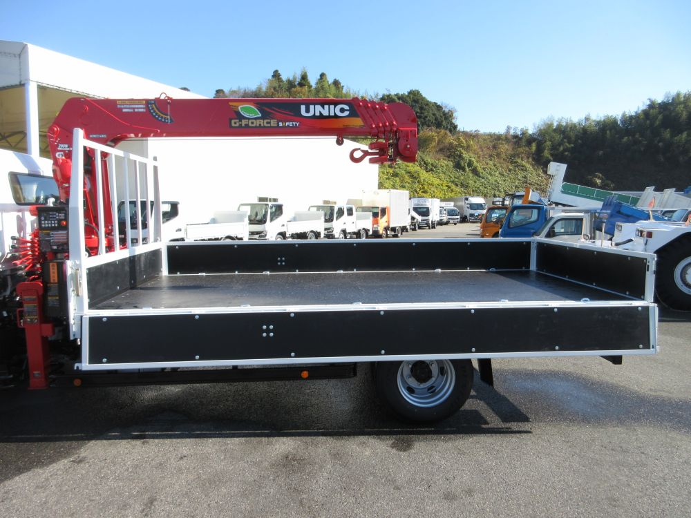 三菱 キャンター ワイド幅 超ロングベース 高床 積載3650Kg 車両総重量7995Kg クレーン付平ボデー UNIC製 ML警報型 5段ブーム ラジコン ユニフック 2.93トン吊り 盗難防止装置リモコン式2個 エアコン パワーウインドー AM/FMラジオ 電動格納ミラー ABS エアバッグ イージーゴー LEDヘッドライト LEDフォグランプ イージーアクセスキー 安全装備 カラーバックアイカメラ 燃料タンク100L タイヤサイズ225/80R17.5 6穴ホイール ドアバイザー 取説・新車保証書・メンテナンスノート リサイクル料金8830円 床木製 煽り開閉補助装置1対 アウトリガスリッパ2枚 アウトリガスリッパ収納庫 引出しフック5対