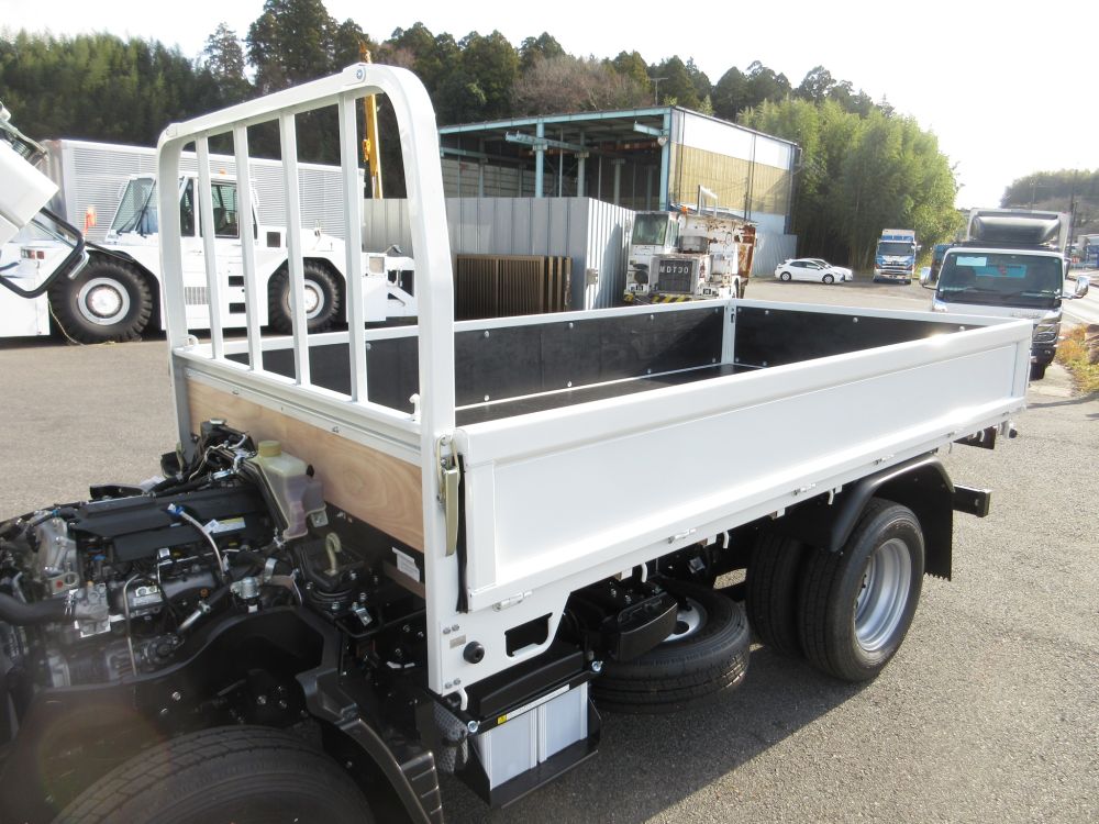 三菱 キャンター ショート 高床 平ボデー 積載量3000Kg エアコン パワーウインドー AM/FMラジオ 電動格納ミラー ABS エアバッグ イージーゴー サイドガードアシスト 安全装備 カラーバックアイカメラ ドアバイザー LEDフォグランプ 燃料タンク70L タイヤサイズ205/75R16 取説・メンテナンスノート・新車保証書 リサイクル料金8830円
